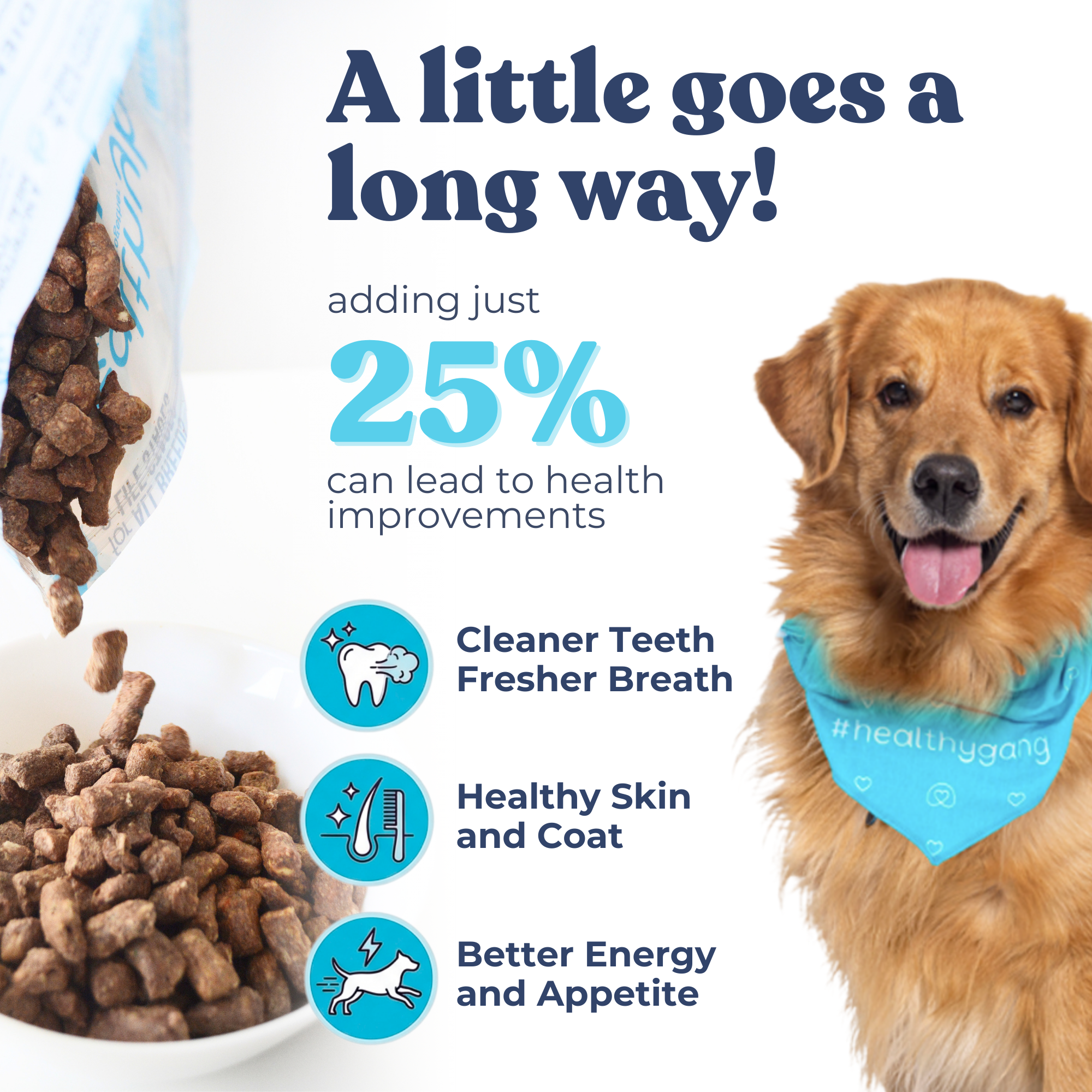 👉 Replace 25% of your dog’s kibble with Healthybud bites